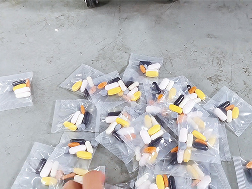 每日營養(yǎng)包數(shù)粒包裝機(jī)是一款針對營養(yǎng)包、藥品顆粒、藥片顆粒劑等產(chǎn)品進(jìn)行數(shù)粒包裝的機(jī)械設(shè)備,該機(jī)配置6個震動盤進(jìn)行數(shù)粒下料,適用范圍廣,包裝速度快,袋子類型有背封和三邊封,也可以定制款式。
